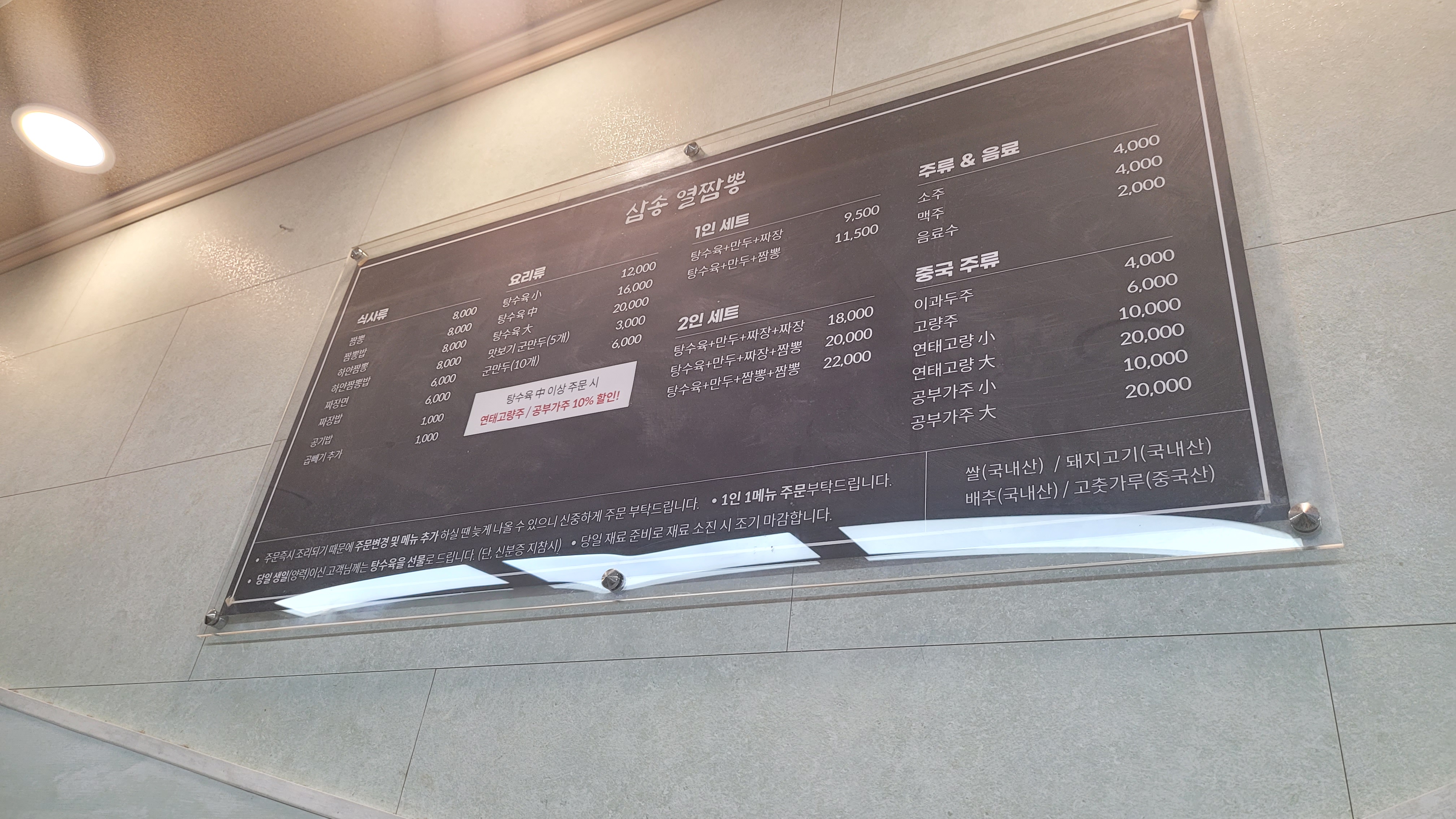 중국집의 흔한 메뉴들이지만 이 집의 메뉴판의 특이점은 짬뽕이 짜장보다 먼저 적혀 있다