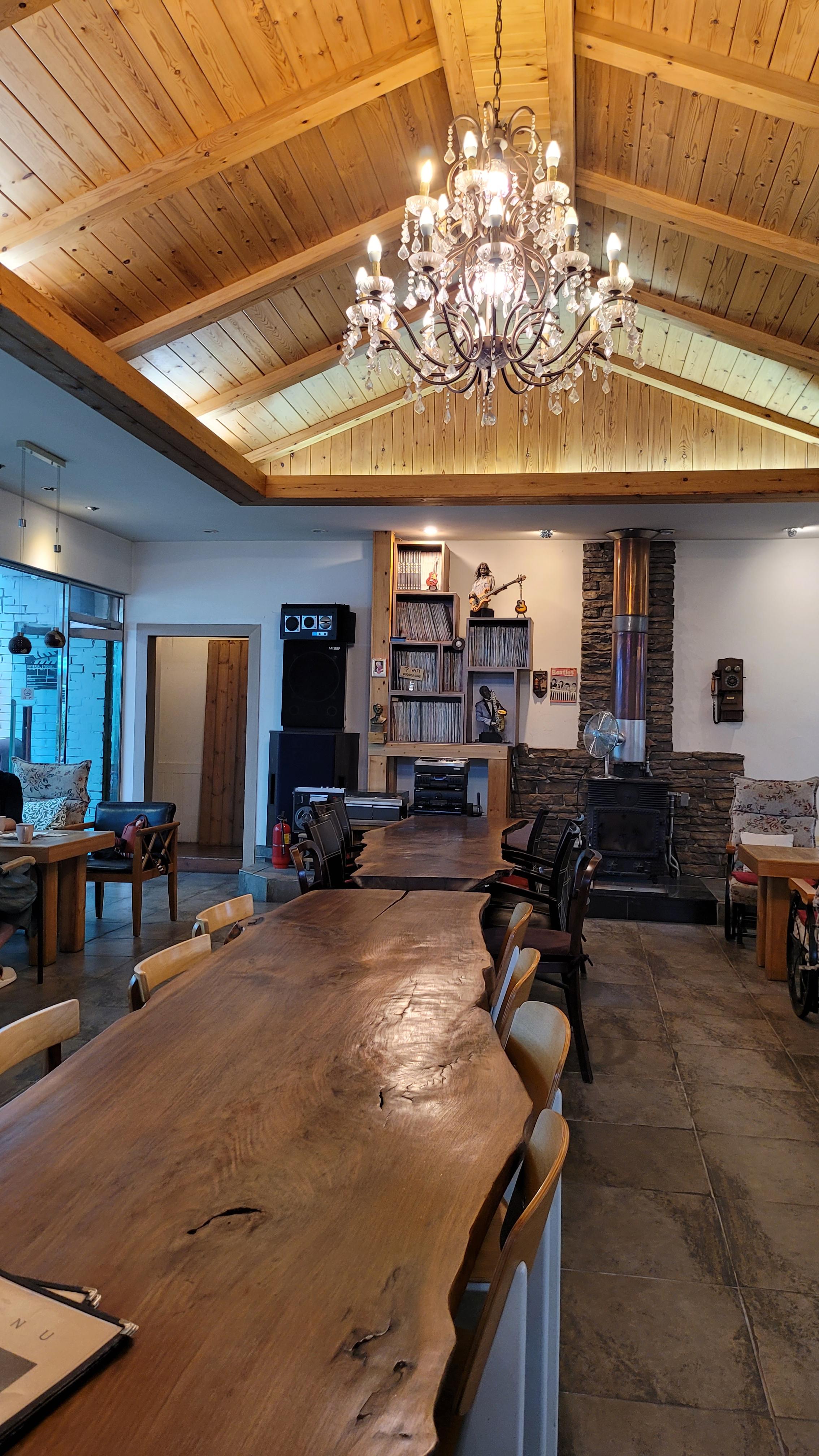 큼지막한 원목 테이블도 갖추고 있어서 많은 인원이 방문해도 문제없어요!