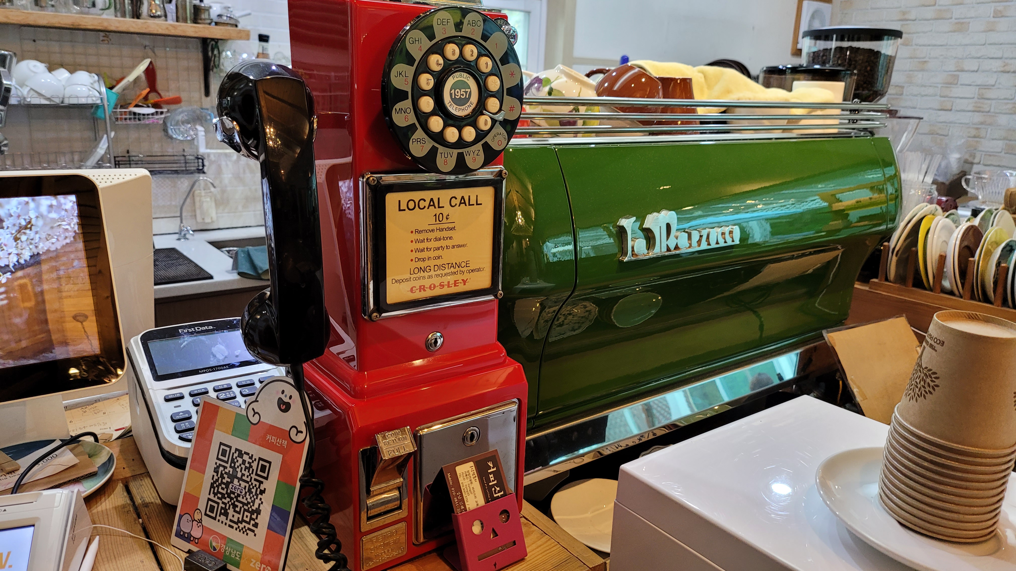 초록색 커피머신도 번쩍번쩍 멋스러움이 느껴졌습니다