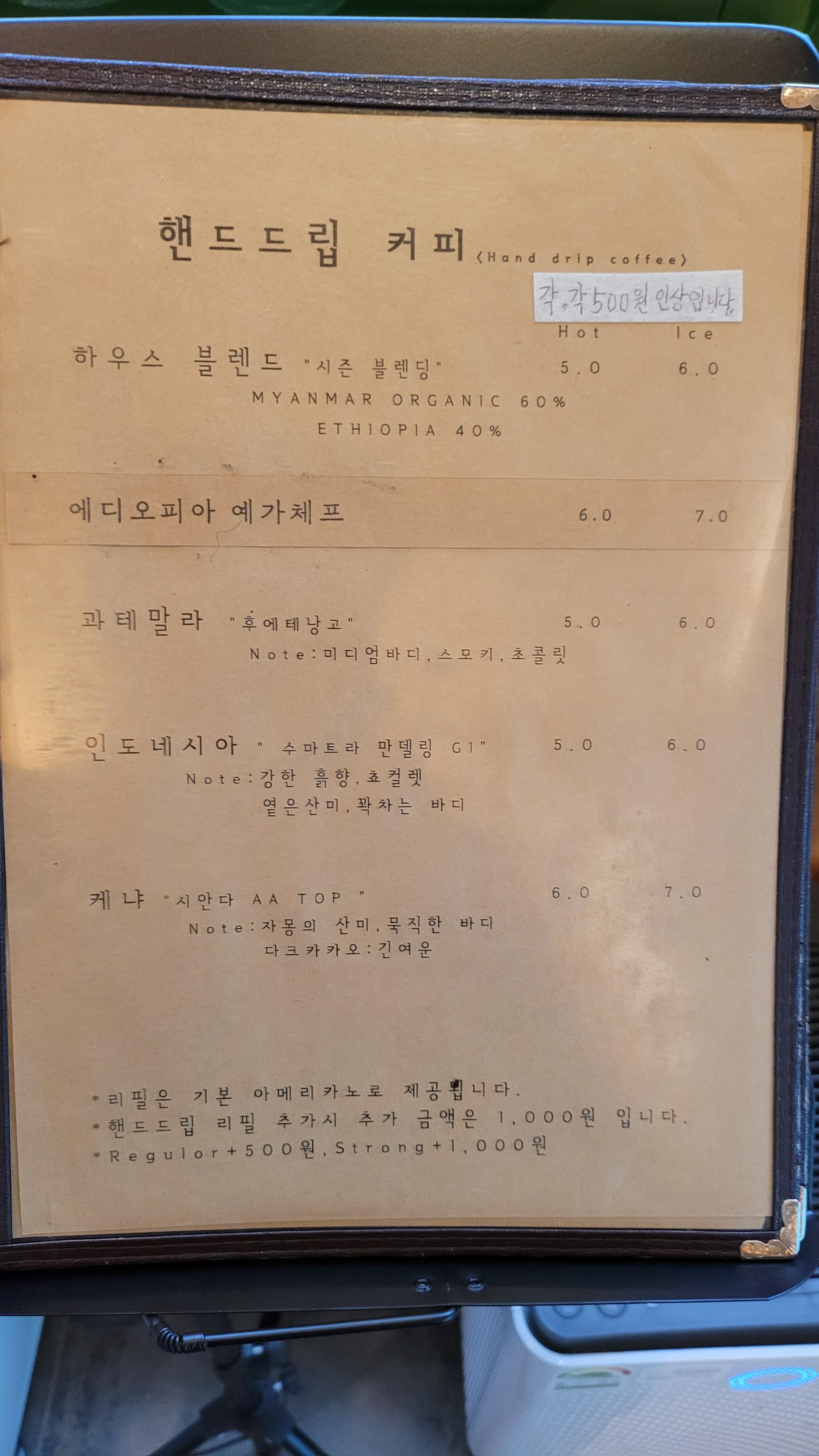 저는 이곳의 시그니처인 팥빙수와 함께 예가체프 핸드드립커피를 주문했어요